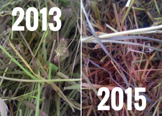 • The 2013 is green with lots of long, sturdy, hard stalks and very little brown leaf.
