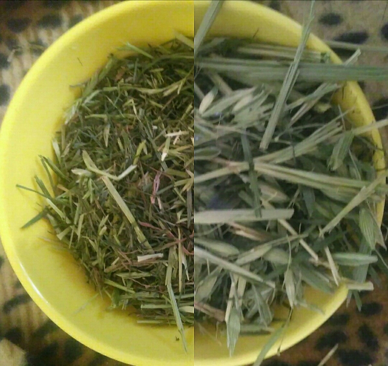 - …consists of fine blades of green grass chopped into couple of inch lengths. The grass is clean, dry and with very little dust.