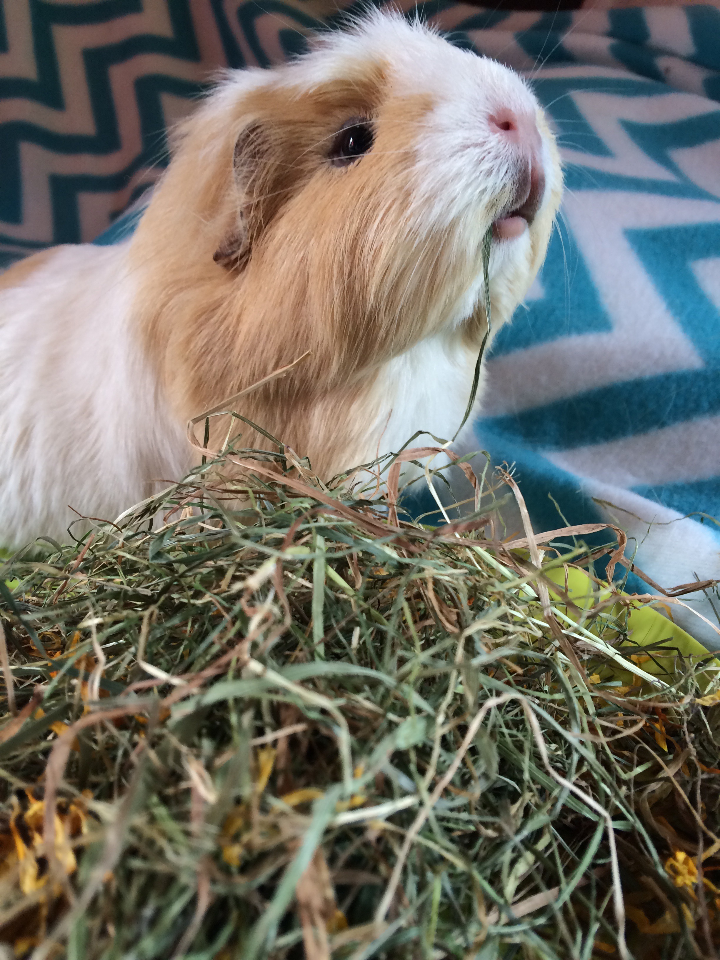 Squidgypigs – Miley munching her 5 a Day Hay - The underlying hay is good quality though so nobody is losing out.