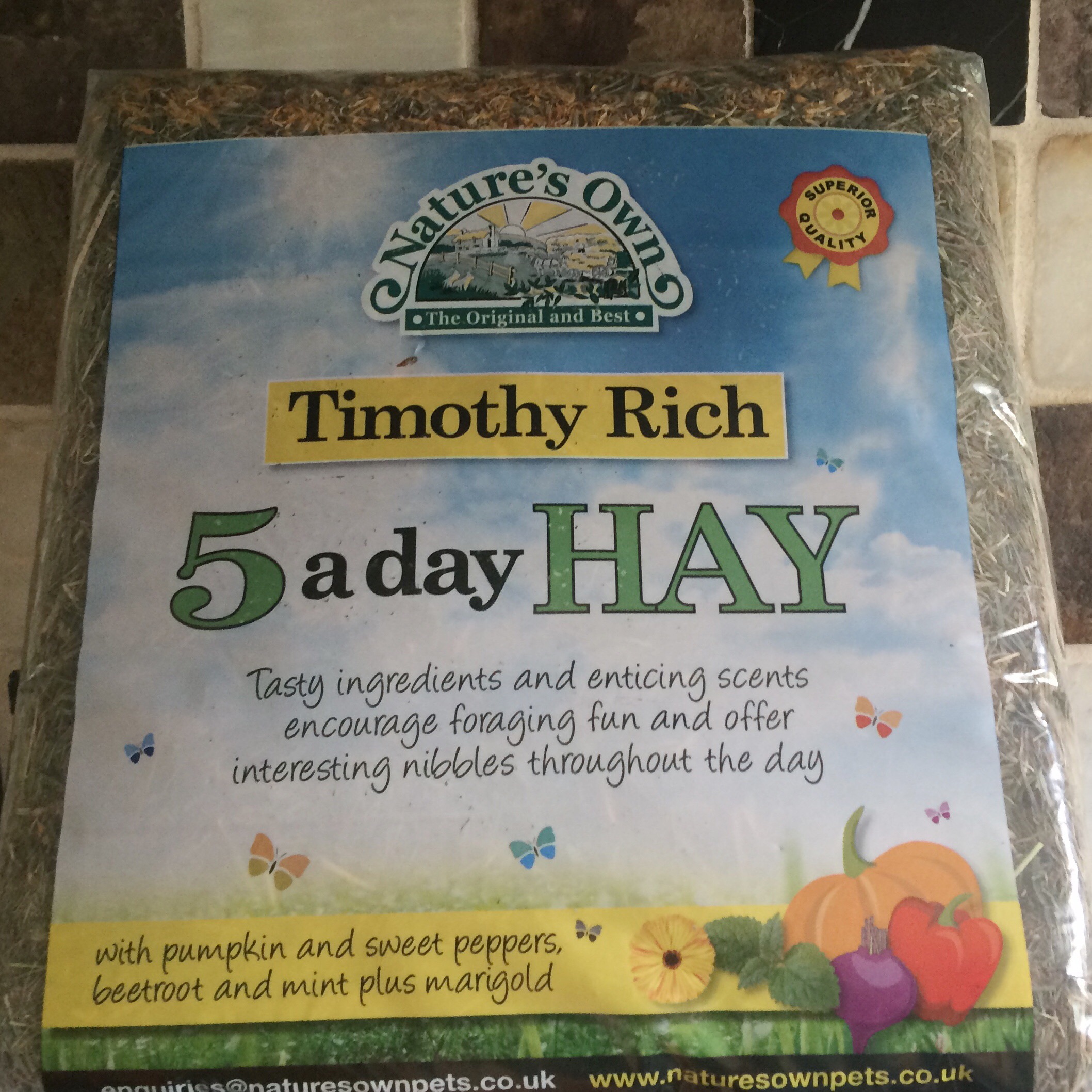 - Whether fed as a standard part of your piggies menu or a treat hay to add variety into your piggies’ diets I feel you cannot go wrong with a bag of Nature’s Own Timothy Rich 5 a Day Hay.