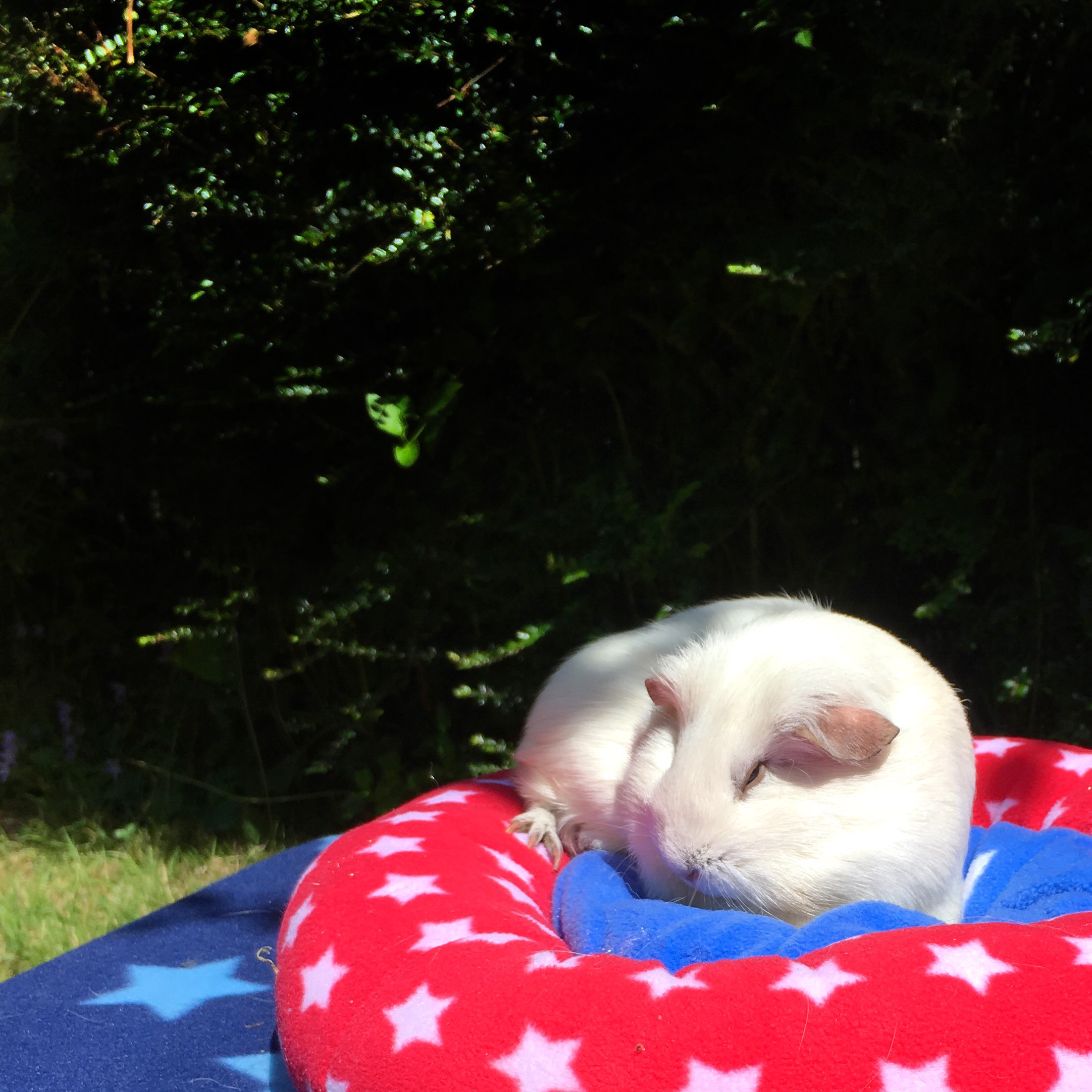 - A circular, fleece, Guinea Pig circus themed bed.