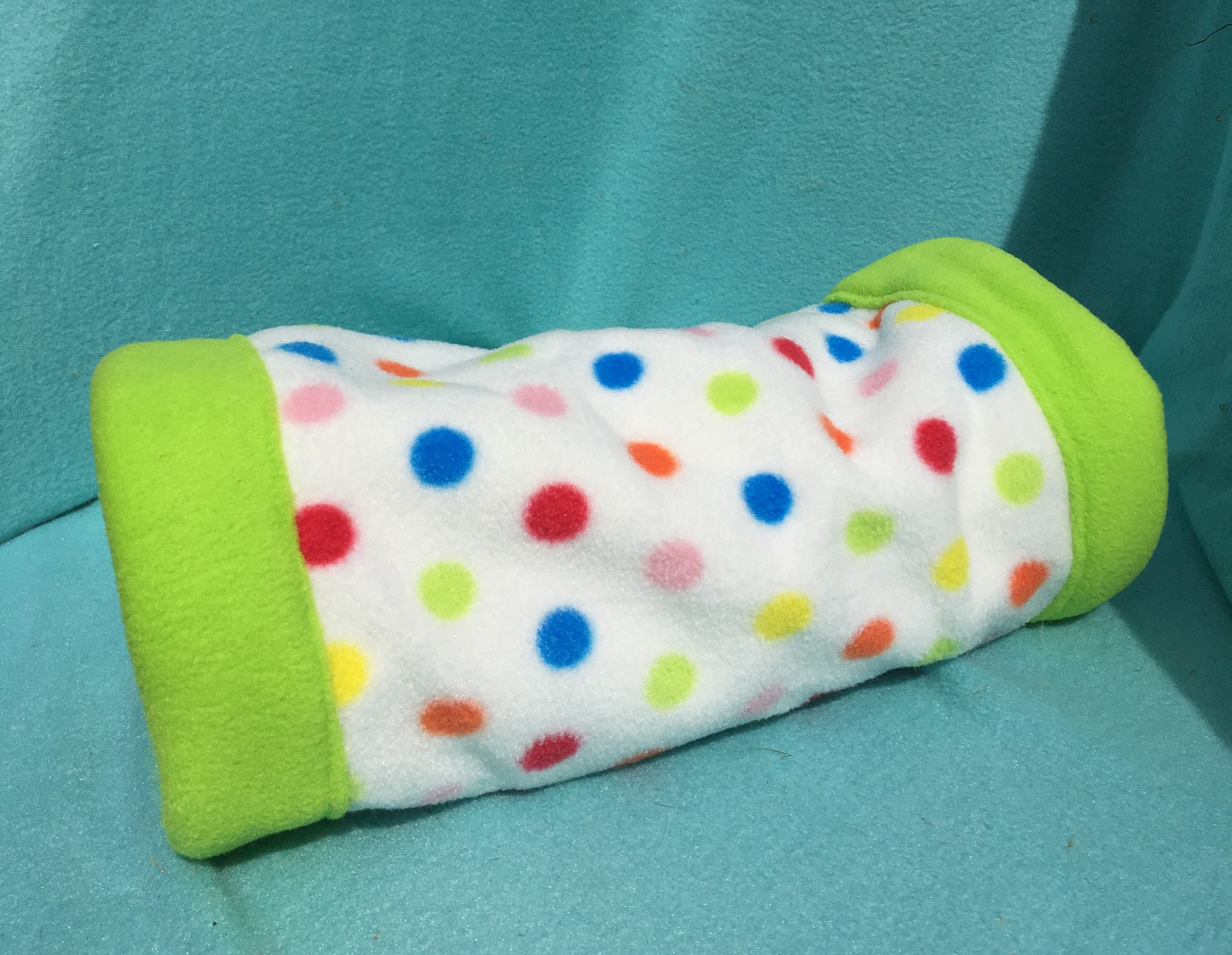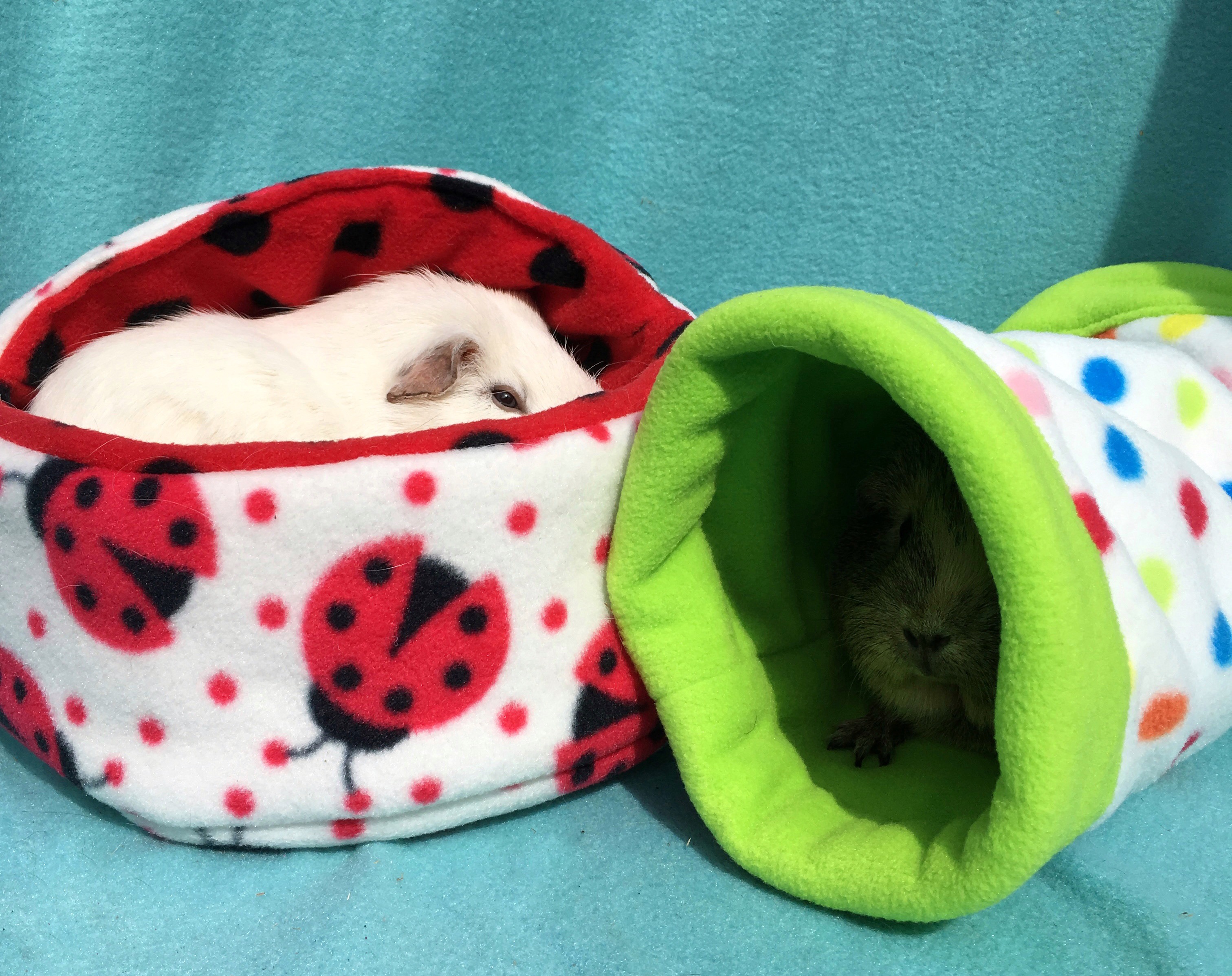 “An all fleece tunnel that combines comfort and fun- your piggie can either use it to take a nap, or run through it!”
