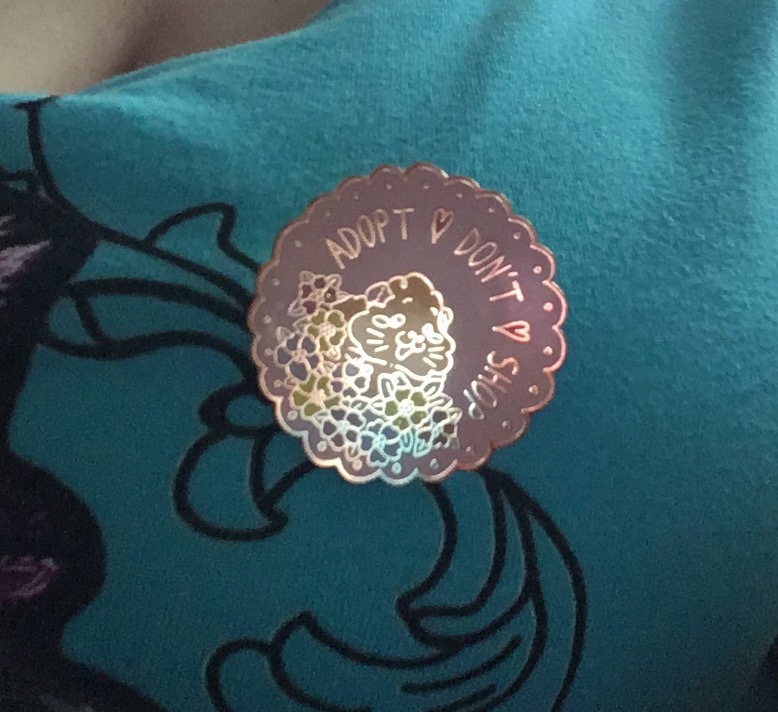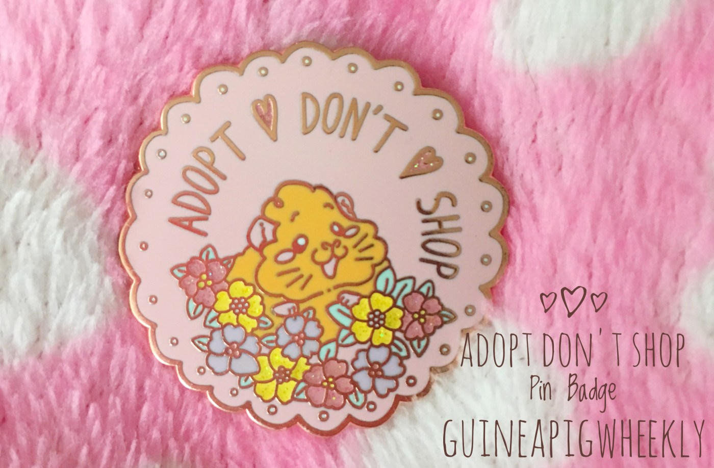 Today we are reviewing the GuineaPigWheekly Adopt Don’t Shop Pin Badge.
