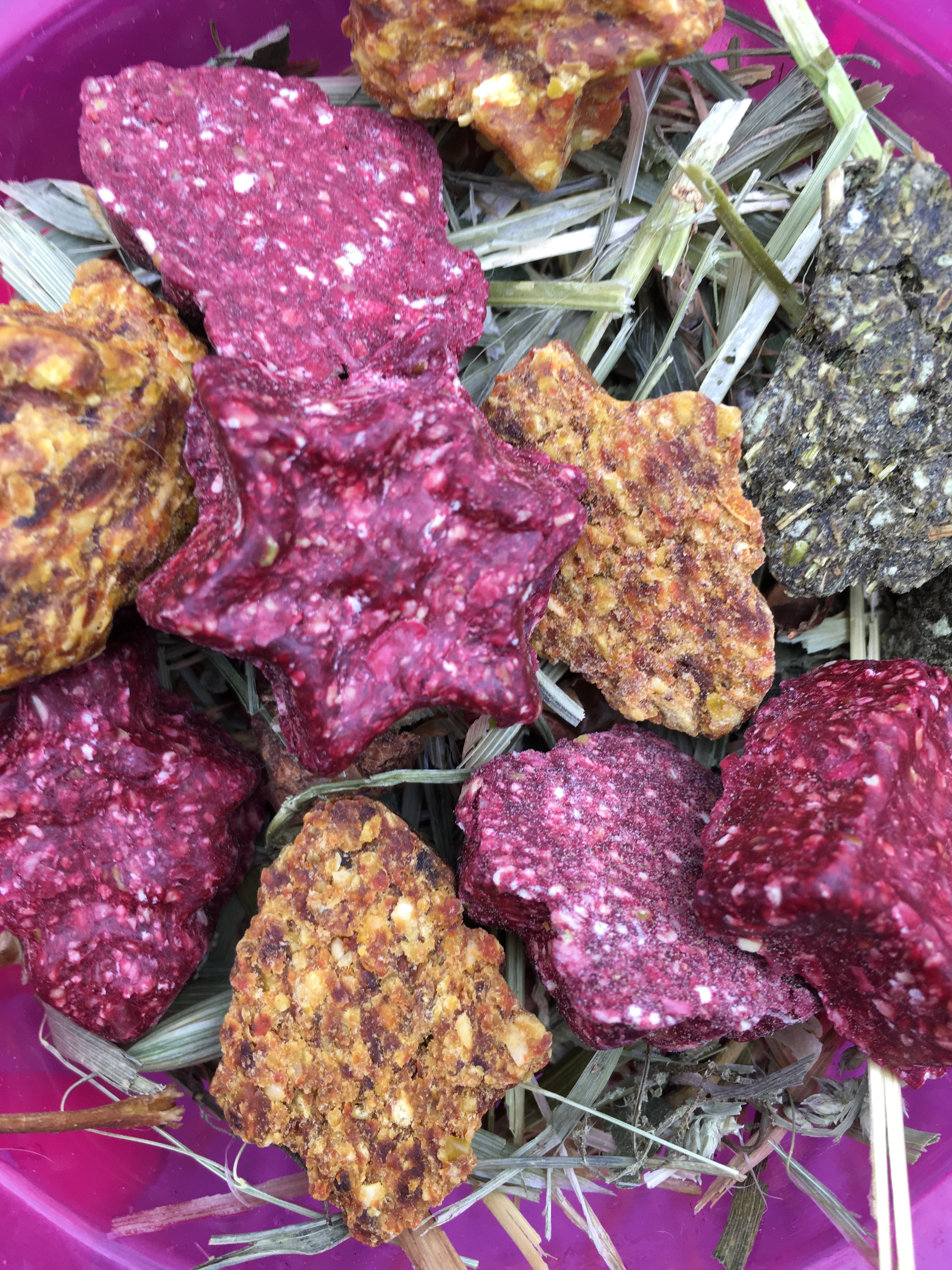 - Christmas Nibbles: Festive shaped treats including beetroot, ribwort, red clover and carrot.